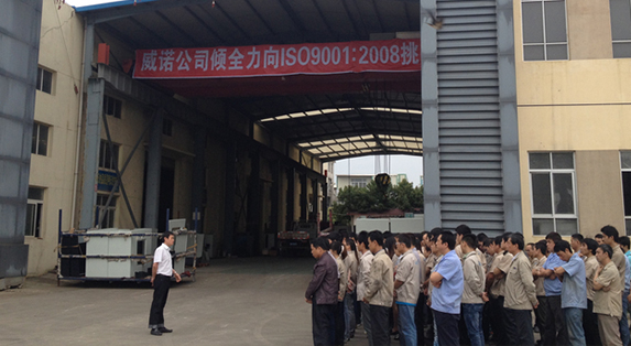 2014年4月30日,翁强总经理主持全厂大会,对第一季度员工工作总结公司效益成绩作出总结。鼓起振威,再接再厉!